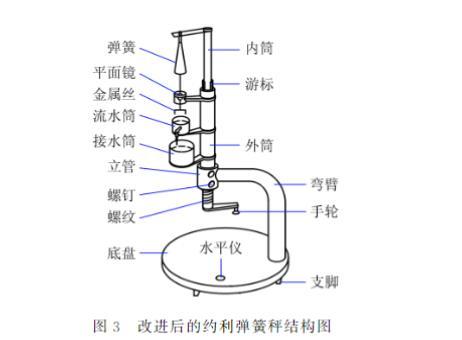 傳統(tǒng)約利彈簧秤的升降主尺刻在內(nèi)筒上,采用細繩連接滑輪驅(qū)動內(nèi)筒及主尺上下移動。但在實際測量過程中,這種結(jié)構(gòu)容易出現(xiàn)運行不穩(wěn)定、易損壞等問題,因此對該實驗的探討和改進一直以來備受廣大高校師生的關(guān)注。針對上述問題,本文對傳統(tǒng)約利彈簧秤的傳動結(jié)構(gòu)進行改進,保留其測量終端不變,測量方法不變,保證改進前后,儀器測量范圍一致。