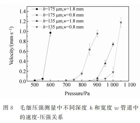 實驗中制作了不同尺寸的微管道來測試和優(yōu)化開放管道的液體輸運特性。