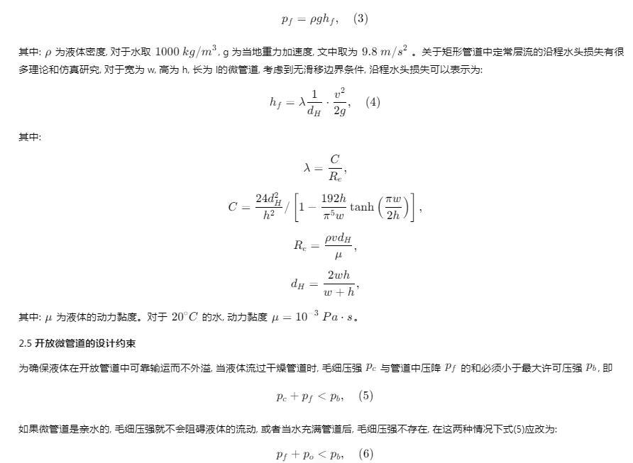 如果微管道是親水的,毛細壓強就不會阻礙液體的流動,或者當水充滿管道后,毛細壓強不存在,在這兩種情況下式(5)應改為: