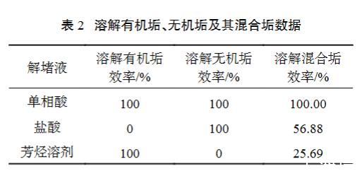 表2溶解有機垢、無機垢及其混合垢數(shù)據(jù)