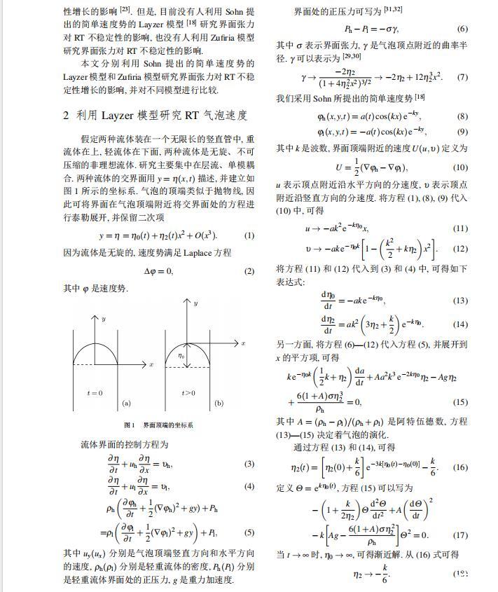 本文分別利用Sohn提出的簡單速度勢的Layzer模型和Zufiria模型研究界面張力對RT不穩(wěn)定性增長的影響,并對不同模型進(jìn)行比較。