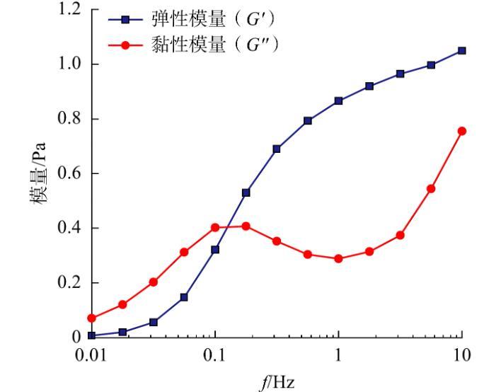 圖8小段塞的黏彈性隨振動頻率的變化情況