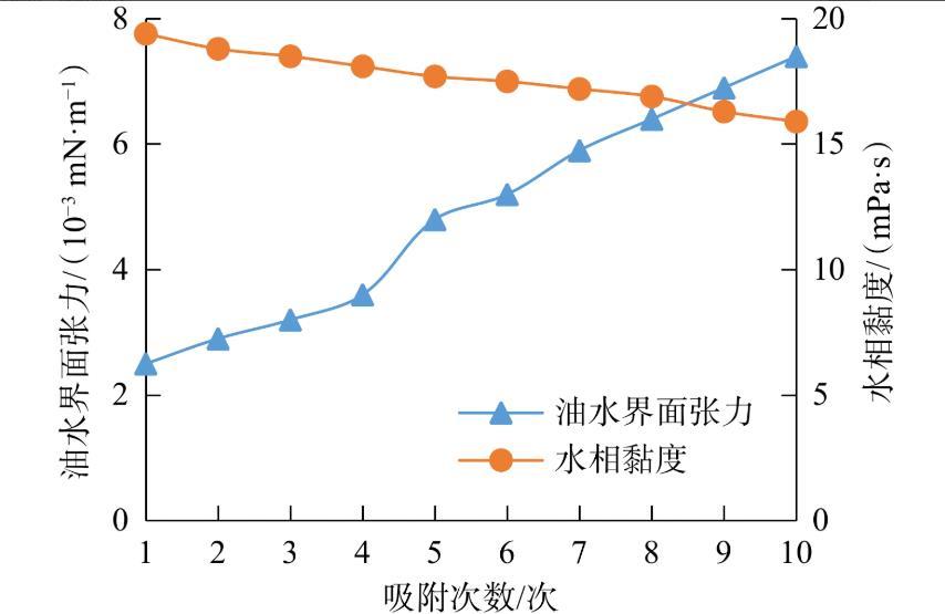 圖6吸附次數(shù)對ACS-2高黏表面活性劑體系的界面張力和水相黏度的影響