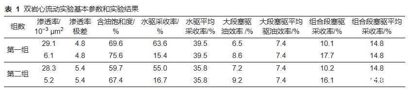 表1雙巖心流動實(shí)驗(yàn)基本參數(shù)和實(shí)驗(yàn)結(jié)果