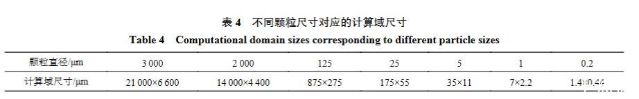 表4不同顆粒尺寸對應(yīng)的計算域尺寸
