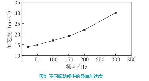 車輛在行駛中傳遞到油水分離器上的振動(dòng)主要集中在10~340 Hz,沿X方向的主要振動(dòng)頻率為20、45、100、200、300 Hz,沿Y方向的主要振動(dòng)頻率為20、50、100、175、203、300 Hz,沿Z方向的主要振動(dòng)頻率為20、100 Hz,加速度均大于8 m/s2,沿Y方向100 Hz的振動(dòng)加速度最大約為39.2 m/s2。為了方便對(duì)試驗(yàn)結(jié)果進(jìn)行比較分析,最終選擇在頻率為20、50、100、150、200、300 Hz,加速度為39.2 m/s2的條件下進(jìn)行試驗(yàn)。